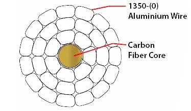 Aluminium Conductor Carbon Fiber Composite Core (ACCFCC) Conductor consists of a solid Composite carbon core which is wrapped with trapezoidal shaped aluminium strands.